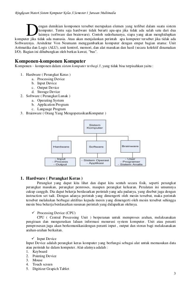 SISTEM KOMPUTER HARDWARE SOFTWARE DAN BRAINWARE Mila Sumber milasukrismas.wordpress.com